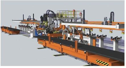 生產線綜合國內外同類產品的優勢設計而成。適合U型縱梁的多品種柔性加工,是眾多汽車縱梁加工設備中的高端產品。
